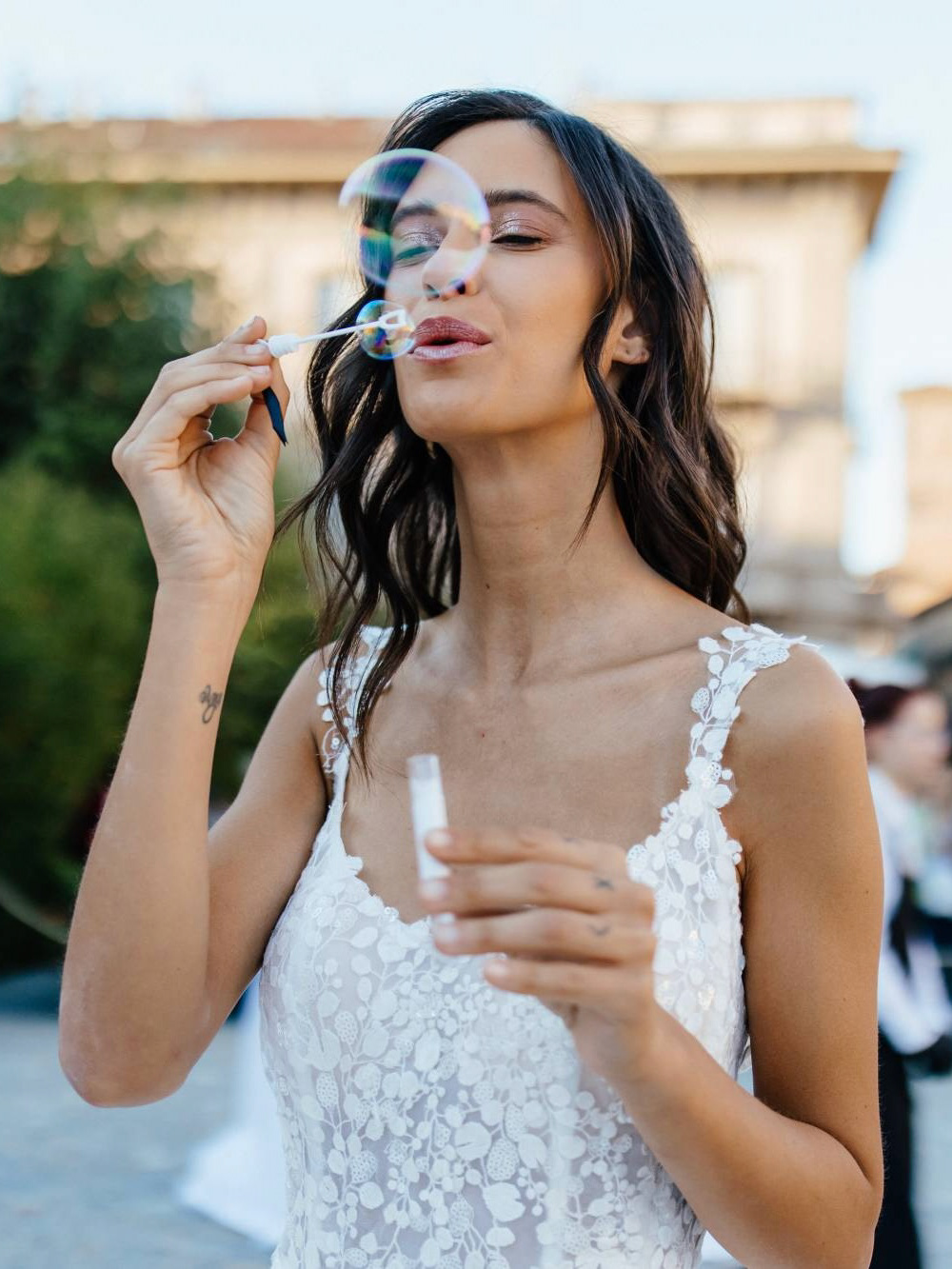 EVA e EVA Tipologia: Makeup editoriale; Caratteristiche: Makeup occhi sui toni del verde, delicatamente sfumato ma luminoso per un effetto etereo. Copertura di tatuaggi e applicazione di una parrucca per completare l'intero look; Type: Editorial makeup; Features: Eye makeup in green tones, softly blended yet luminous for an ethereal effect. Tattoo coverage and wig application to complete the overall look; Makeup e hair: Gino Aurora;